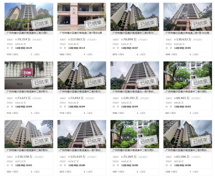 最典型的就是广州南沙的案例,逸涛雅苑四期的88套全新住宅,一次性被摆上阿里法拍平台,没想到首次挂牌就全部成交,总成交额达到8041万元。